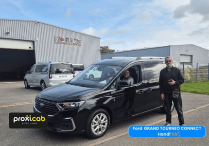 Le Groupe CORDIER, affilié à Proxicab (44), est venu récupérer à Guipry-Messac son Ford Tourneo Connect Handi’Air TPMR récemment aménagé. Ce modèle, pensé pour le transport de personnes à mobilité réduite, répond aux besoins des professionnels du transport adapté.